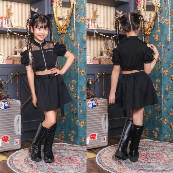 通常4〜7営業日後に出荷。メーカー在庫切れの場合納期最大2ヶ月。 ご注文前にお問い合わせいただけましたら納期確認いたします。 お気軽にお問い合わせください。 人気のK-POPダンス要素とスポーティーをMIXしたカジュアルスタイル。 全身ブラックコーデにカチューシャは合皮素材、猫耳にリング状ハトメ、そしてセパーレートタイプでお腹見せと強めでエネルギッシュなイメージ。 スポーティー要素として首まわりのメッシュ生地やオープンファスナー、袖のスプリングストッパー、ガチャベルトなどを取り入れました。 素材はストレッチ生地を使用し、カチューシャは頭が痛くなりにくいよう細めの芯を使用しました。 ●サイズ● 【120cm】 ■対応サイズ 7〜8歳目安、身長 115〜125cm、B 〜66cm、W 〜58cm ■実寸 B:68cm W:50〜60cm 肩幅:27cm 袖丈:13cm ●セット内容● カチューシャ、トップス、スカート ●素材● ポリエステル100% ●原産国● 中国 ●仕様● *裏地:無し *開き:トップス/前ファスナー、スカート/ウエストゴム *洗濯不可、塩素系漂白剤による漂白不可、アイロンは中温で当て布使用、ドライクリーニング不可 *洗濯はお避け下さい。 *汚れは水で薄めた中性洗剤でタオル等を使って拭き取って下さい。 *アイロンは、当て布使用して下さい。 *装飾部分の引っ掛かりや巻き込みに十分ご注意ください。 *保護者同伴でのご使用をお願い致します。 *生産時期やロット、デザインによって、多少サイズ・色・柄・仕様が異なる場合があります。 *染料の性質上、汗、雨、摩擦により多少色落ちする場合がございます。 *淡い色との重ね着にはご注意ください。 *商品画像は可能な限り実物の色に近づくよう調整しておりますが、お使いのモニター設定、お部屋の照明等により実際の商品と色味が異なって見える場合がございます。又、同じ商品の画像でも、撮影環境によって画像の色に差異が生じる場合がございます。 ●モデル身長● 121cm(モデル着用サイズ120cm) ■おすすめオプション小物類■ 単品カチューシャやネコ耳などの小物類(1000円程度より多数販売中) ニーハイソックス、タイツなど(500円より多数販売中!) ■すぐに商品が欲しい!!という方■ 即日配達商品一覧がございますので、よろしければそちらをご覧下さいませ。 ■とにかく安くて高品質な商品が欲しい!という方■ 特別割引商品を掲載しています!最大80%引きの商品もあったりします! エアガン・迷彩服・ミリタリー装備品の通販ショップ ■ミリタリー初心者・女性大歓迎! 送料全国一律¥500! 決済方法いろいろ! ■ミリタリーコスプレの小物が必要な時は、コンバットアームズでお買い物♪ ■映画・アニメ・ゲームで有名な銃を¥1000〜取り揃えています! ★ミアカフェ・ミアリラではミアコス衣装を着用したイベントを実施中★ ★ミアグループのロリィタブランド デビュー★