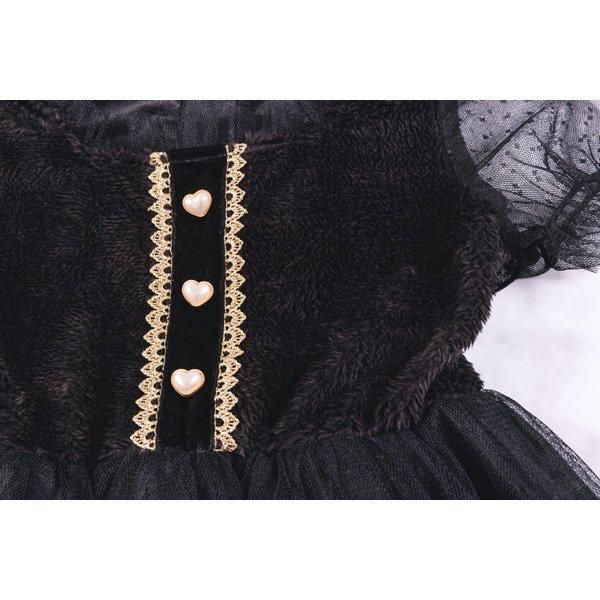 通常4〜7営業日後に出荷。メーカー在庫切れの場合納期最大2ヶ月。 ご注文前にお問い合わせいただけましたら納期確認いたします。 お気軽にお問い合わせください。 ブラック×アンティークゴールドの組み合わせが大人っぽい雰囲気のうさぎコスチューム。 耳、チョーカー、ワンピースの上半身には毛足の長いファーとプードルファーを使用しアニマル感を。 胸のハートボタンがポイント。 袖や耳中にはドットチュール、襟ぐりとスカートにはソフトチュールを使用しふんわり軽やかな印象に仕上げました。 ●サイズ● 【140cm】 ■対応サイズ 10〜11歳目安、身長 135〜145cm、B 〜74cm、W 〜66cm ■実寸 B:74〜78cm W:56〜66cm 肩幅:27cm 袖丈:22cm ●セット内容● カチューシャ、チョーカー、ワンピース ●素材● ポリエステル100% ●原産国● 中国 ●仕様● *裏地:スカート部分のみ有り *開き:背中心ファスナー *洗濯不可、塩素系漂白剤による漂白不可、アイロンは中温で当て布使用、ドライクリーニング不可 *洗濯はお避け下さい。 *汚れは水で薄めた中性洗剤でタオル等を使って拭き取って下さい。 *アイロンは、当て布使用して下さい。 *装飾部分の引っ掛かりや巻き込みに十分ご注意ください。 *保護者同伴でのご使用をお願い致します。 *生産時期やロット、デザインによって、多少サイズ・色・柄・仕様が異なる場合があります。 *染料の性質上、汗、雨、摩擦により多少色落ちする場合がございます。 *淡い色との重ね着にはご注意ください。 *商品画像は可能な限り実物の色に近づくよう調整しておりますが、お使いのモニター設定、お部屋の照明等により実際の商品と色味が異なって見える場合がございます。又、同じ商品の画像でも、撮影環境によって画像の色に差異が生じる場合がございます。 ●モデル身長● 124cm(モデル着用サイズ120cm) ■おすすめオプション小物類■ 単品カチューシャやネコ耳などの小物類(1000円程度より多数販売中) ニーハイソックス、タイツなど(500円より多数販売中!) ■すぐに商品が欲しい!!という方■ 即日配達商品一覧がございますので、よろしければそちらをご覧下さいませ。 ■とにかく安くて高品質な商品が欲しい!という方■ 特別割引商品を掲載しています!最大80%引きの商品もあったりします! エアガン・迷彩服・ミリタリー装備品の通販ショップ ■ミリタリー初心者・女性大歓迎! 送料全国一律¥500! 決済方法いろいろ! ■ミリタリーコスプレの小物が必要な時は、コンバットアームズでお買い物♪ ■映画・アニメ・ゲームで有名な銃を¥1000〜取り揃えています! ★ミアカフェ・ミアリラではミアコス衣装を着用したイベントを実施中★ ★ミアグループのロリィタブランド デビュー★