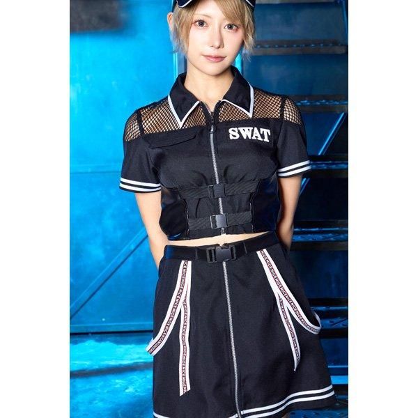 キャップと左胸にはSWATロゴをプリントし、右胸には飾りポケットを施しました。