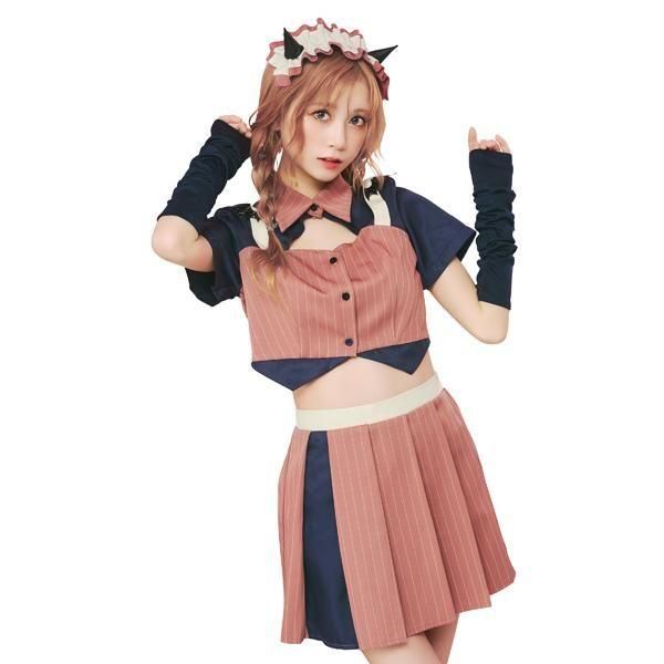 通常4〜7営業日後に出荷。メーカー在庫切れの場合納期最大2ヶ月。 ご注文前にお問い合わせいただけましたら納期確認いたします。 お気軽にお問い合わせください。 ファッショナブルな要素と遊び心あふれるカラーリングが特徴の新感覚のコスチューム「トリックピクス」。 クラシカルなピンストライプ柄にネイビーを効かせたセットアップに、ほんのり悪戯っぽさを加えたデビルモチーフのデザインです。 トップスはシャツとビスチェをドッキングした作りになっています。 肩紐に付いた小さなデビルの羽とヘッドドレスのツノがポイントです。 デコルテやウエストが少し開いていることで重たくならず抜け感があります。 スカートはアシンメトリーな切り替えとプリーツで動きに軽やかさを与え、スタイルアップも狙えるバランス設計。 アームカバーもセットなので、写真や動画でもしっかり映える存在感のあるルックに。 ストリート感といたずらな可愛さがミックスされた、注目度の高い一着です。 ●サイズ● 【Ladies】 ■対応サイズ 身長 155〜165cm、B 〜90cm、W 〜70cm、H 〜96cm ■実寸 B:90cm W:64〜78cm 肩幅:35cm 袖丈:18cm 着丈:トップス43cm、スカート38cm ●セット内容● ヘッドドレス、トップス、スカート、アームカバー ●素材● ポリエステル100% ●仕様● *開き:トップス/前ボタン、スカート/後ろウエストゴム *裏地の有無:無し *洗濯不可、塩素系漂白剤による漂白不可、アイロンは中温で当て布使用、ドライクリーニング不可 *洗濯はお避け下さい。汚れは水で薄めた中性洗剤でタオル等を使って拭き取って下さい。アイロンは、当て布使用して下さい。 *生産時期やロット、デザインによって、多少サイズ・色・柄・仕様が異なる場合があります。 *摩擦や水濡れにより色移りする恐れがありますのでご注意ください。 *商品画像は可能な限り実物の色に近づくよう調整しておりますが、お使いのモニター設定、お部屋の照明等により実際の商品と色味が異なって見える場合がございます。又、同じ商品の画像でも、撮影環境によって画像の色に差異が生じる場合がございます。 ●モデル身長● 158cm/鹿目楓果 ■おすすめオプション小物類■ 単品カチューシャやネコ耳などの小物類(1000円程度より多数販売中) ニーハイソックス、タイツなど(500円より多数販売中!) ■すぐに商品が欲しい!!という方■ 即日配達商品一覧がございますので、よろしければそちらをご覧下さいませ。 ■とにかく安くて高品質な商品が欲しい!という方■ 特別割引商品を掲載しています!最大80%引きの商品もあったりします! エアガン・迷彩服・ミリタリー装備品の通販ショップ ■ミリタリー初心者・女性大歓迎! 送料全国一律¥500! 決済方法いろいろ! ■ミリタリーコスプレの小物が必要な時は、コンバットアームズでお買い物♪ ■映画・アニメ・ゲームで有名な銃を¥1000〜取り揃えています! ★ミアカフェ・ミアリラではミアコス衣装を着用したイベントを実施中★ ★ミアグループのロリィタブランド デビュー★