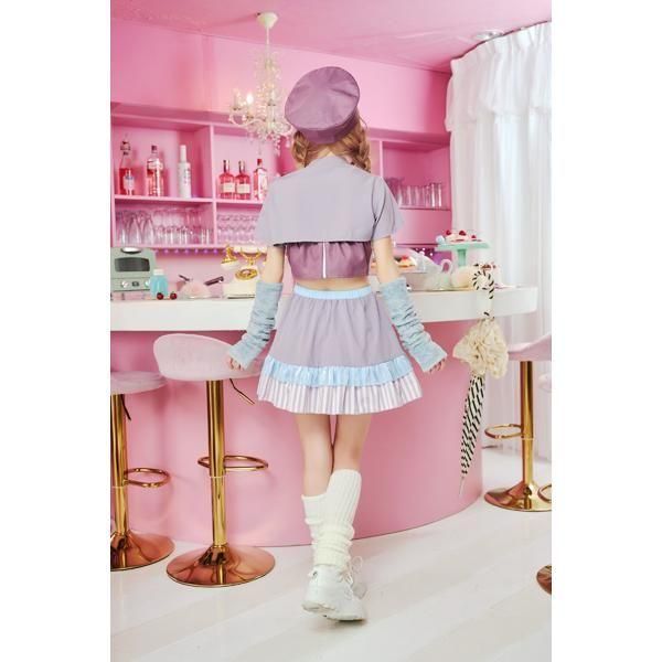 スカートはティアード風デザインで、動くたびにふんわり揺れて視線を惹きつけます。