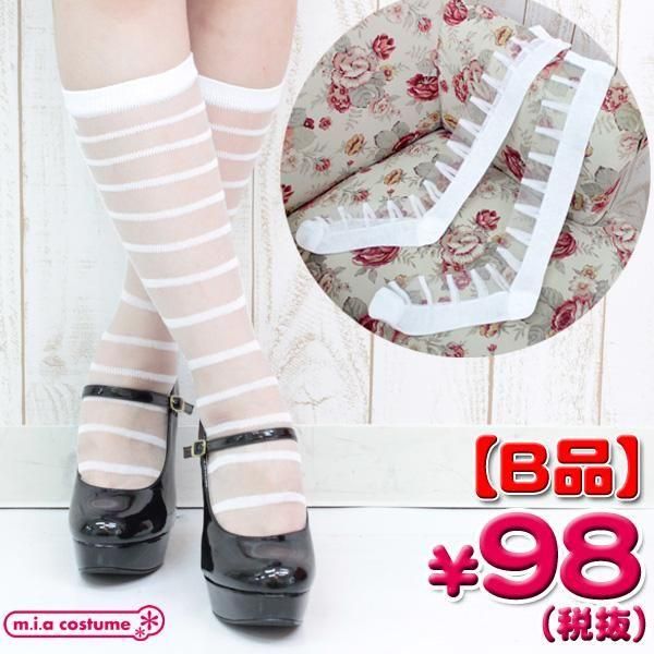 完全自社在庫商品。 2〜3営業日にて出荷 お買い得ソックス★ コーデに欠かせないハイソックスをシースルーでオシャレに♪ 何か物足りないっ、てときにはコレですvv いつものコーディネートに楽しさプラス♪ ●注意● 商品によって程度の違いがございますが、履き口のゴムの劣化変色が見られるため新品B品となります。 その他予期せぬ色移り等の汚れや不具合がある場合がございますので、ご了承ください。 返金・返品・交換等には一切応じることができません。ご納得の上ご購入願います。 ●セット内容● ソックス ●サイズ● 22〜24cm ●素材● ポリエステル、ナイロン、ポリウレタン ●生産● 中国製 ■おすすめオプション小物類■ 単品カチューシャやネコ耳などの小物類(1000円程度より多数販売中) ニーハイソックス、タイツなど(500円より多数販売中!) ■すぐに商品が欲しい!!という方■ 即日配達商品一覧がございますので、よろしければそちらをご覧下さいませ。 ■とにかく安くて高品質な商品が欲しい!という方■ 特別割引商品を掲載しています!最大80%引きの商品もあったりします! ミリタリー装備品の通販ショップ ■ミリタリー初心者・女性大歓迎! 送料全国一律¥500! 決済方法いろいろ! ■ミリタリーコスプレの小物が必要な時は、コンバットアームズでお買い物♪ ■映画・アニメ・ゲームで有名な銃を¥1000〜取り揃えています! ■有名キャラクターになりきりコレクション、お得なセットご用意してます! ★拡大写真★